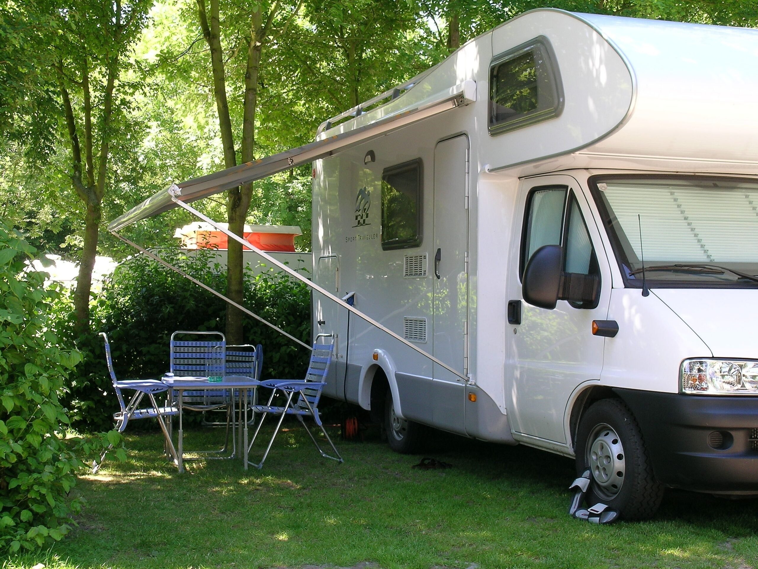 - Camper service area for filling the water tank and discharging waste water