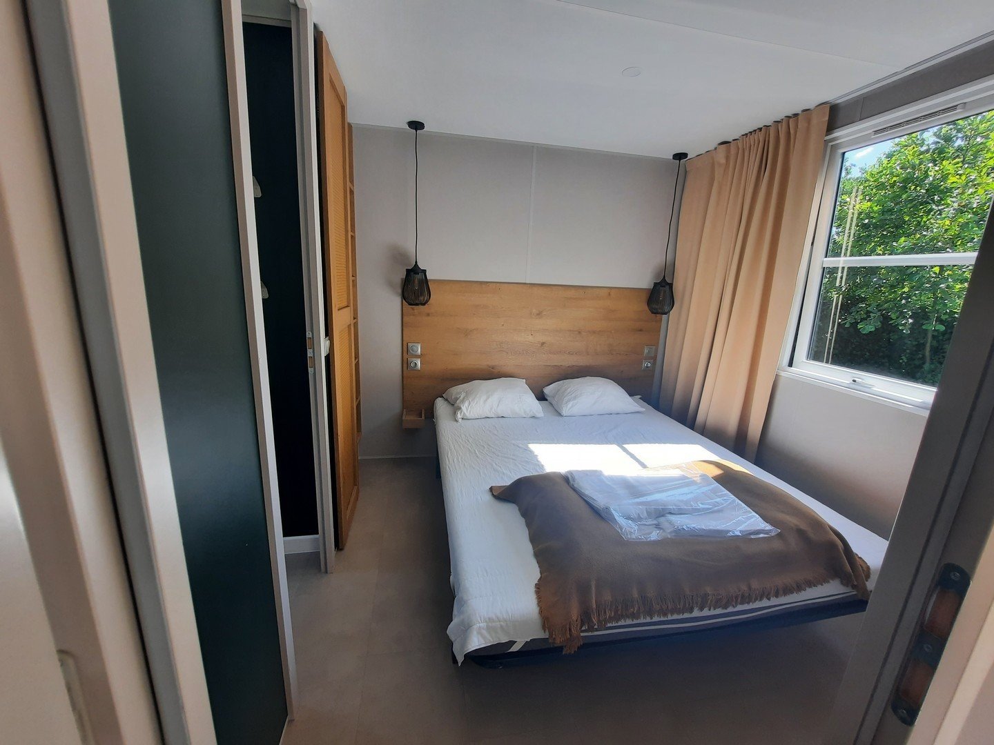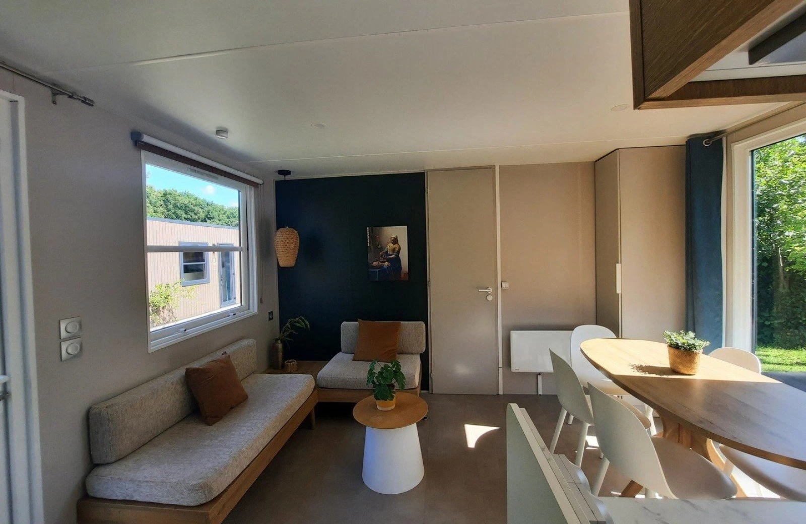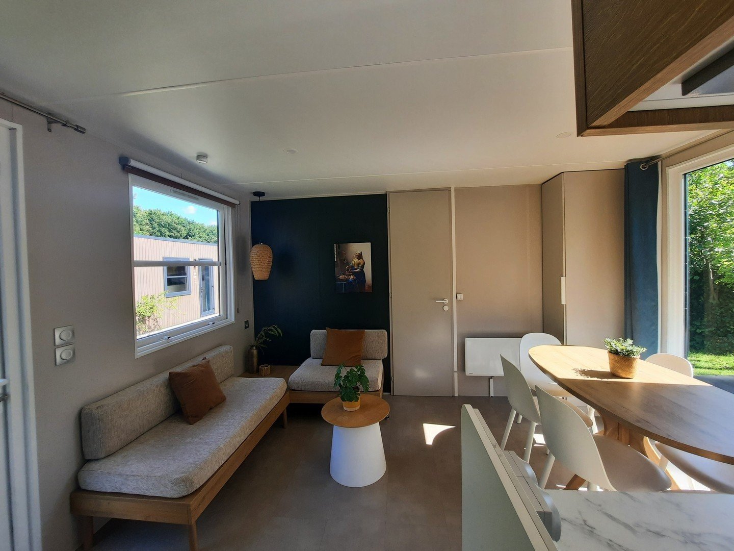 This luxurious lodge can accommodate up to 6 people and is ideal for families or groups of friends. The real plus point? The lodge has two bathrooms, so everyone can follow their own pace. In addition, the kitchen is equipped with a dishwasher and the veranda offers a nice place to sit together. Enjoy comfort, privacy and a beautiful location near the water.