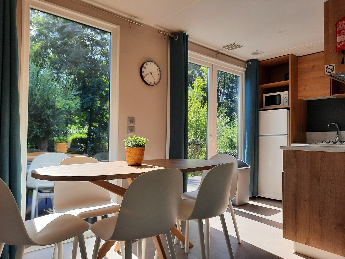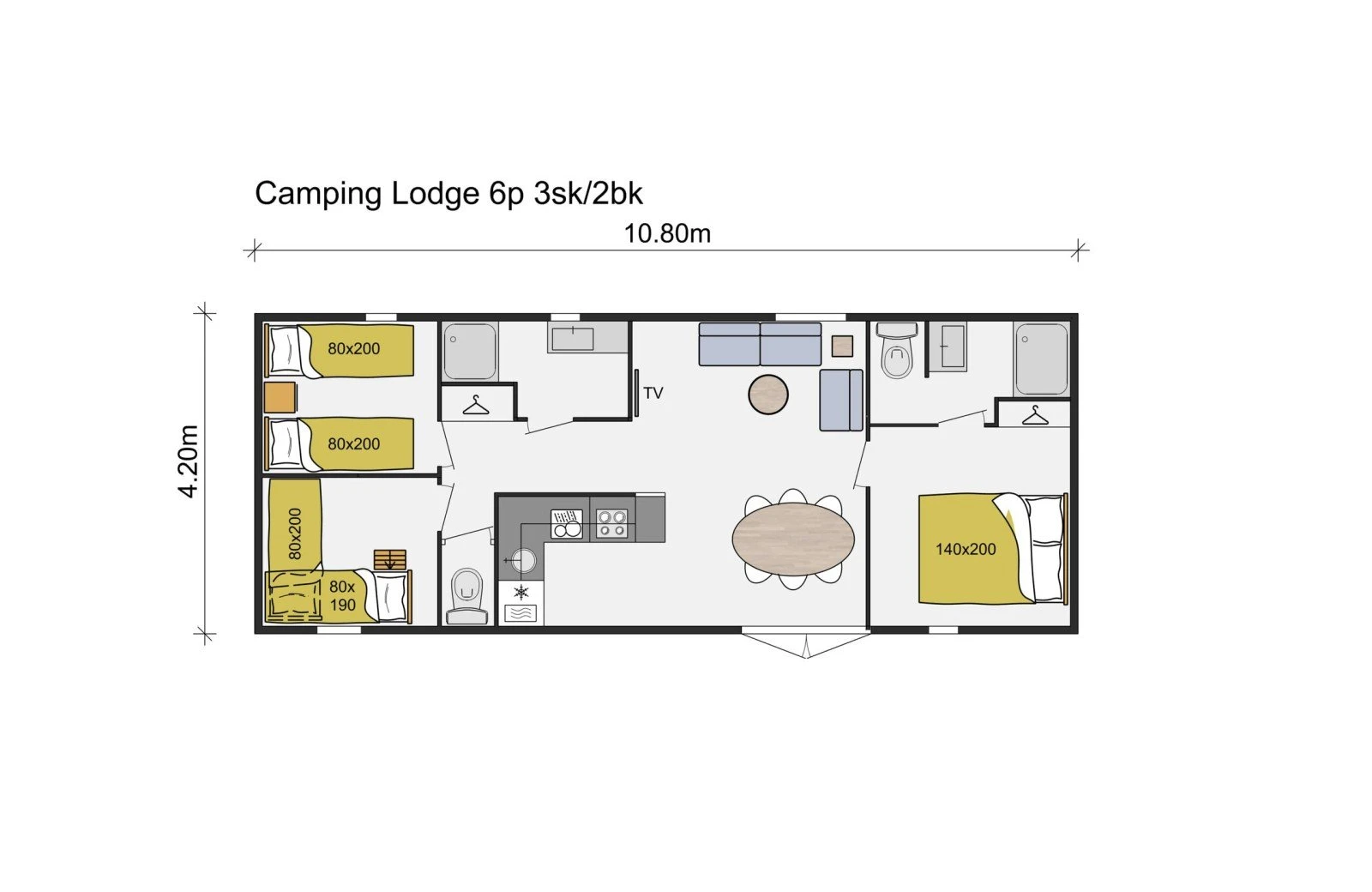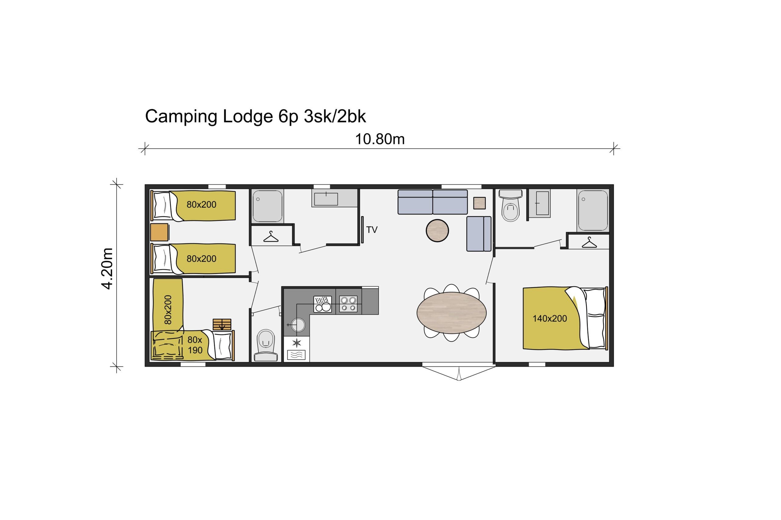 This luxurious lodge can accommodate up to 6 people and is ideal for families or groups of friends. The real plus point? The lodge has two bathrooms, so everyone can follow their own pace. In addition, the kitchen is equipped with a dishwasher and the veranda offers a nice place to sit together. Enjoy comfort, privacy and a beautiful location near the water.