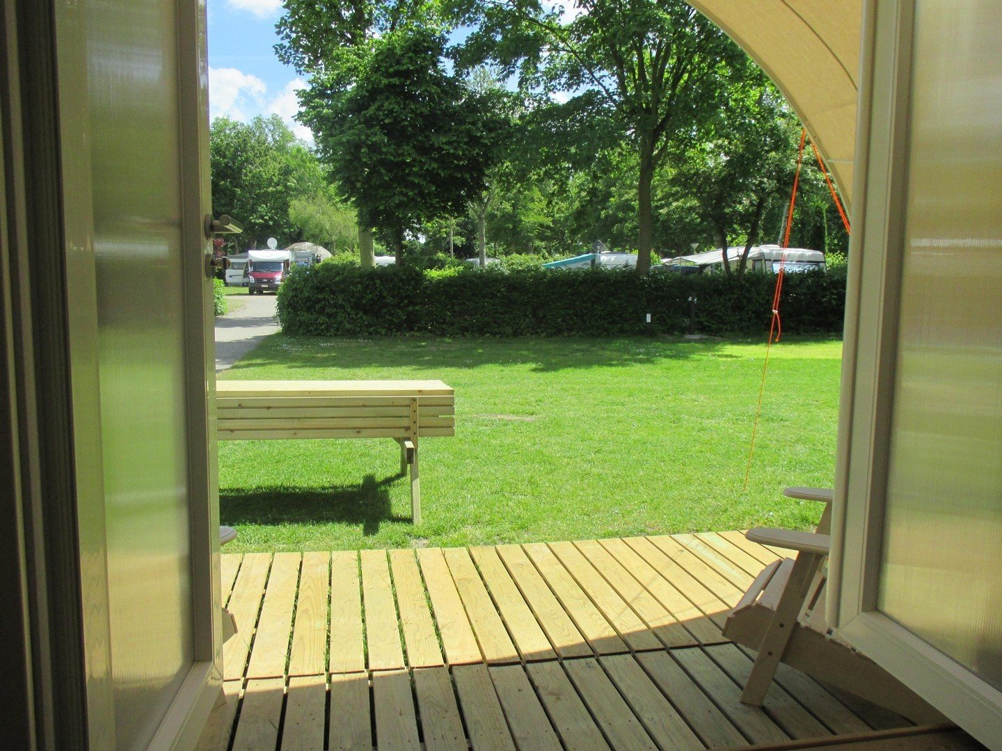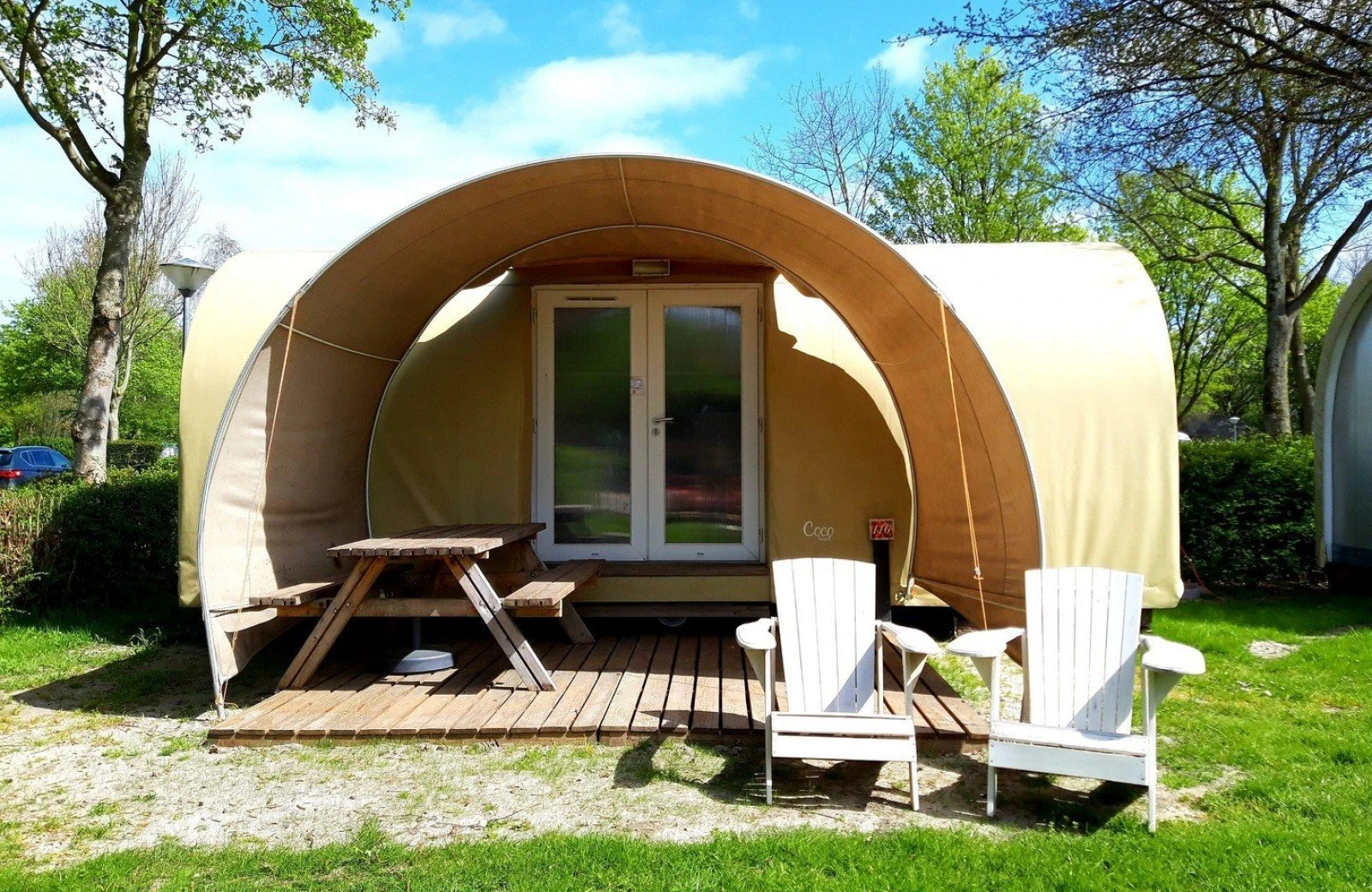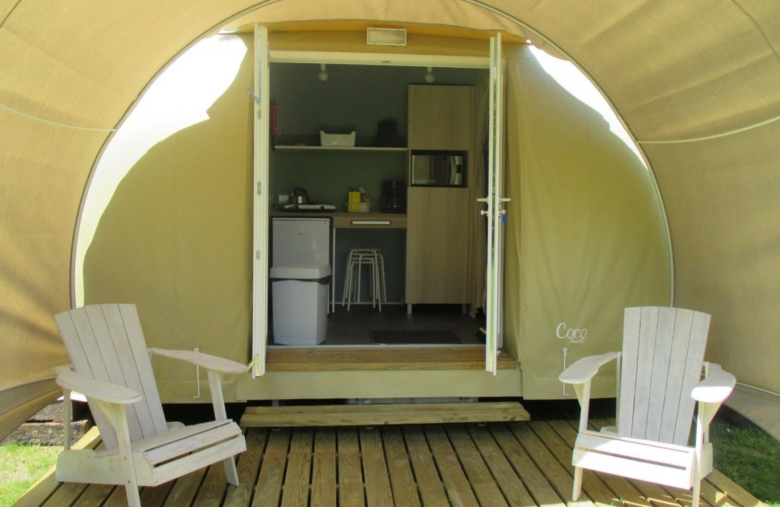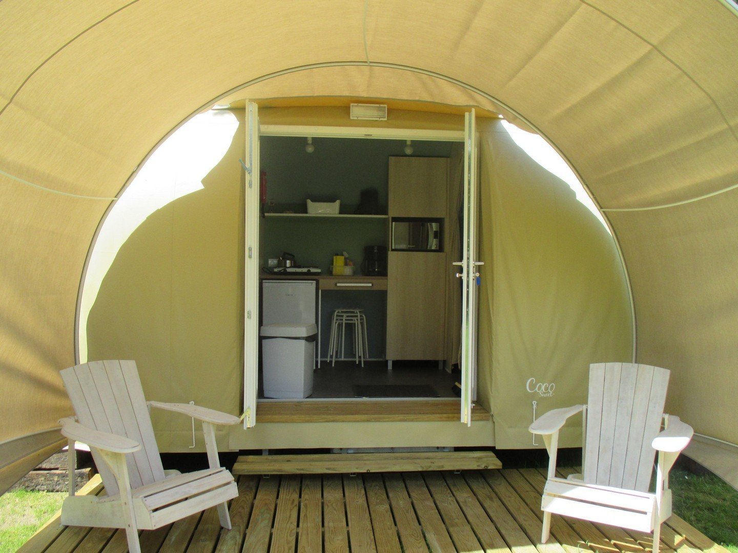 For adventurous and sporty campers who don't bring a tent: the Coco is ready and waiting for you when you arrive. No lugging around tent poles or pegs, just step inside and enjoy a ready-made camping holiday.