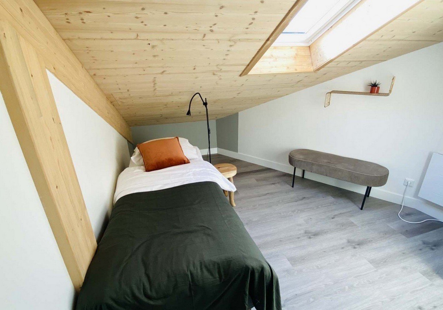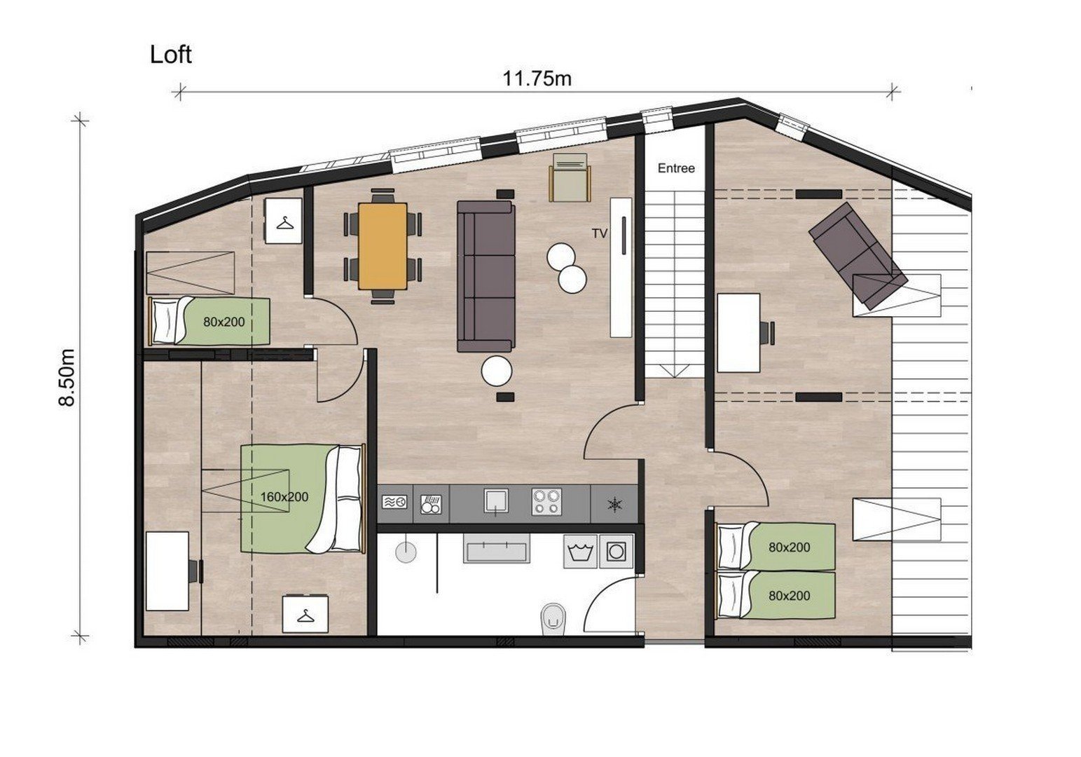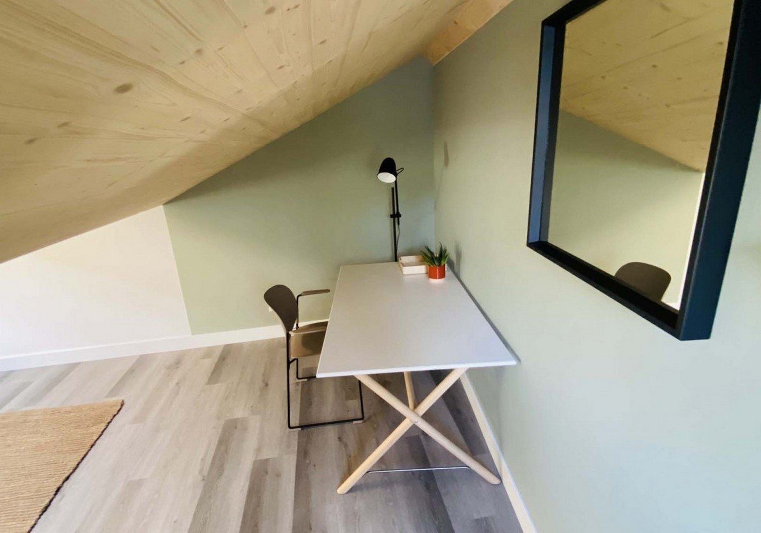 Feel right at home in this spacious loft with a cosy, open kitchen. The flat is centrally located in the park, at the top of the new centre building, overlooking the playground and the entertainment stage. A wonderful place to stay with family or friends!