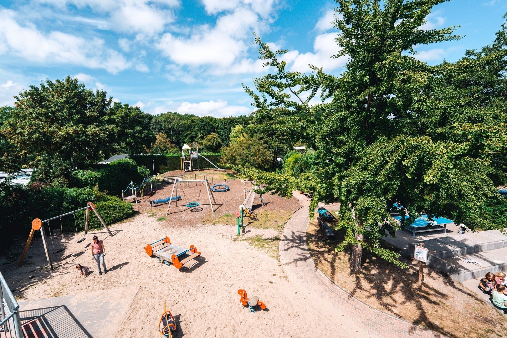 Good news! Our playground has been renovated for even more holiday fun. With a large slide, climbing frames, swings and much more, children can play and explore endlessly here. More new playground equipment is on the way, so stay tuned! The playground is located near the sanitary building and the swimming pool.